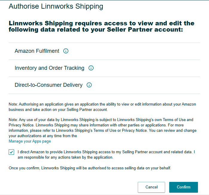 The Amazon Smart Connect integration connects Linnworks to the Amazon Seller Flex backend, allowing you to generate shipping labels.